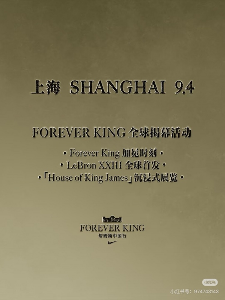 8月22日讯 今日,耐克官方在其小红书账号账号上公布了2025年詹姆斯中国行的具体行程和活动安排,并发布了一张詹姆斯中国行的海报。