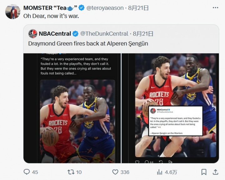 追梦继续回复:“有没有人能告诉一下伊森妈妈,她在他们输球之前就说过要开战了。”