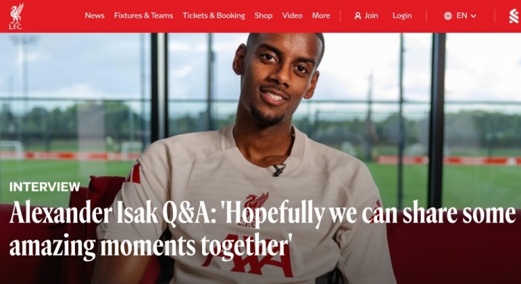 9月2日讯 利物浦已经官宣引进纽卡中锋伊萨克,后者也接受了俱乐部官网的问答采访。