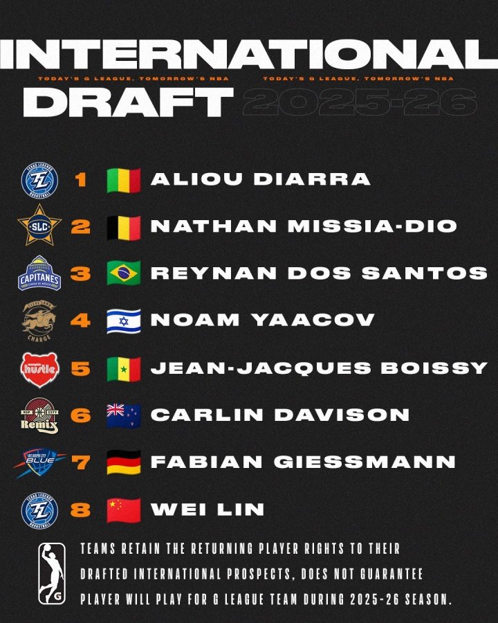 07月09日讯 NBA G联盟国际球员选秀,中国球员林葳被独行侠下属球队德克萨斯传奇队以第8顺位选中。