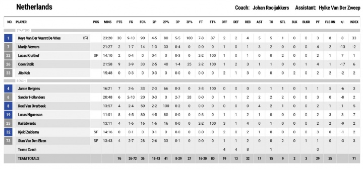 荷兰男篮球员数据
