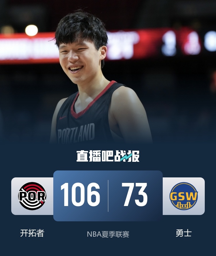 7月12日讯 夏季联赛今日继续开打,开拓者和勇士迎来一场对决,中国球员杨瀚森首发领衔出战迎来个人NBA生涯首场夏季联赛。