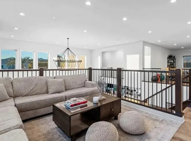 这座5691平方英尺的豪宅建于四年前,拥有五间卧室和4.5个浴室,主卧套房配备了一个四季浴室。房子内部有高挑的天花板、一个带有“超大”岛台的美食厨房、一间办公室/图书馆、两个阁楼以及一个三车位车库。