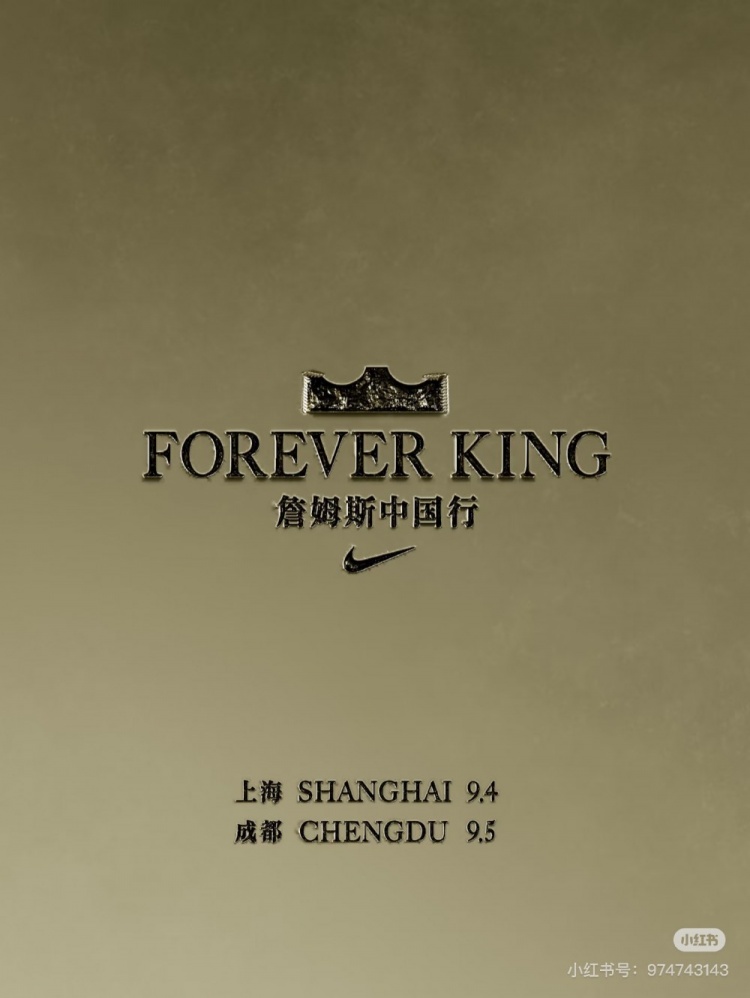 8月22日讯 今日,耐克官方在其小红书账号账号上公布了2025年詹姆斯中国行的具体行程和活动安排,并发布了一张詹姆斯中国行的海报。