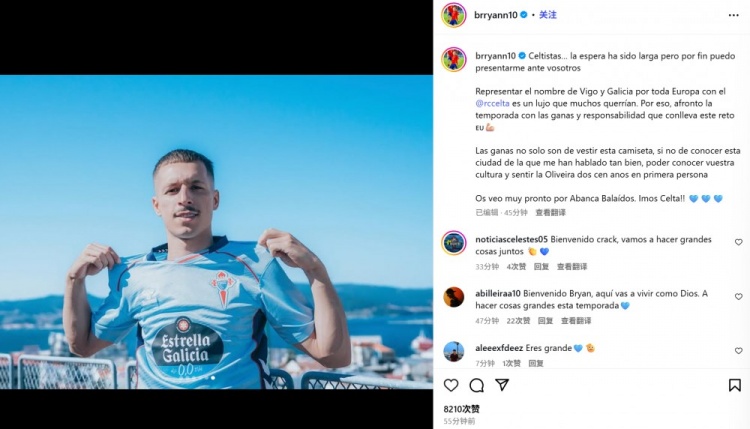 代表维戈和加利西亚地区,随@塞尔塔参加欧战,是许多人梦寐以求的荣耀。因此,我将满怀热忱与肩负挑战的责任感迎接这个赛季